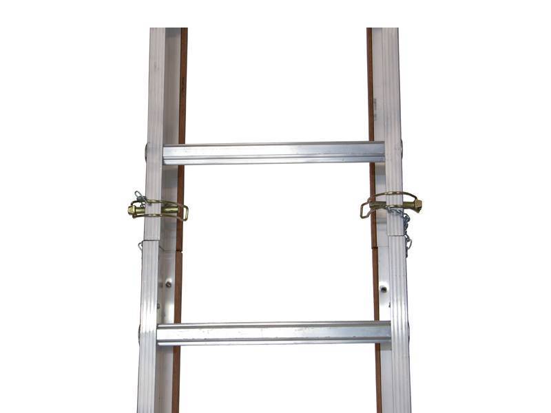 - Dankzij de standaard aanwezige koppelstukken kan men de afzonderlijke ladders met elkaar verbinden om de gewenste afstand te overbruggen.